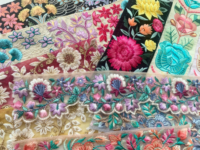 このように魅力的なカラフルなインド刺繍リボンの世界。