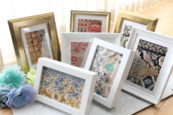 リボンコラージュフレーム 2023.08.09 BLOG リボンコラージュフレーム カラフルで見てるだけでも楽しいインド刺繍リボン達。 これらのリボンをコラージュしたフレームも制作しています。 お部屋のアクセントに サイズも色合いも様々。 夏らしい涼しげなブルー系のコラージュから、大人な雰囲気のモノトーン系のコラージュまで。 ばぐるちゅの感性で作り上げたコラージュフレームです。 世界で一つだけのフレーム。 お部屋に飾ってみませんか? 販売準備中です。 もう少しお待ちくださいね。 関連情報 リボンコラージュフレーム コメントは受け付けていません。