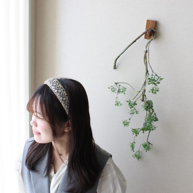 シンプルな装いも、このカチューシャをプラスするだけで、顔周りがパッと華やかに。